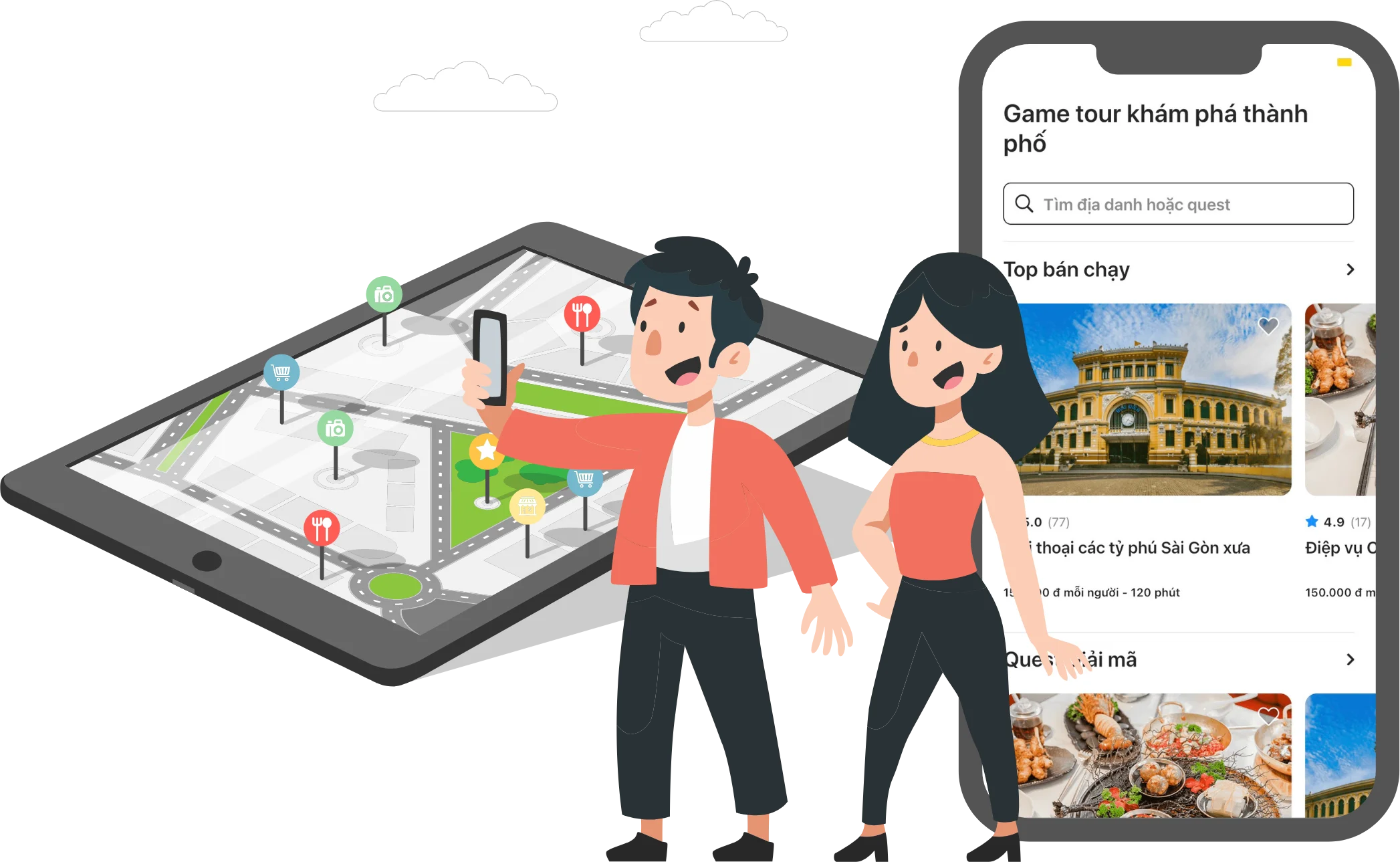 Chúng tôi cung cấp các Quest là các tour du lịch tự túc đã được game hoá với các thử thách thú vị trong chuyến đi.